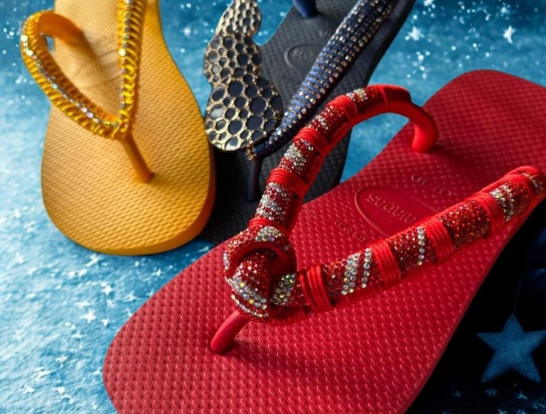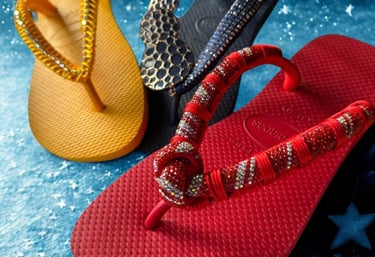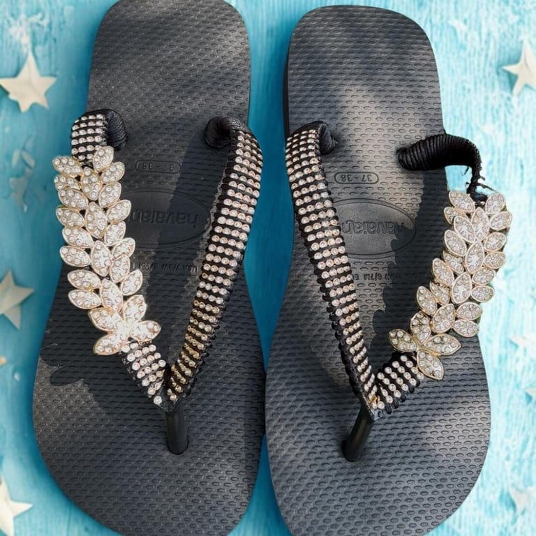 A linha Órion foi criada para quem ama exclusividade. Cada par é cuidadosamente feito à mão, com detalhes em strass, pedrarias e acabamentos artesanais, transformando o chinelo em uma verdadeira joia para os pés.